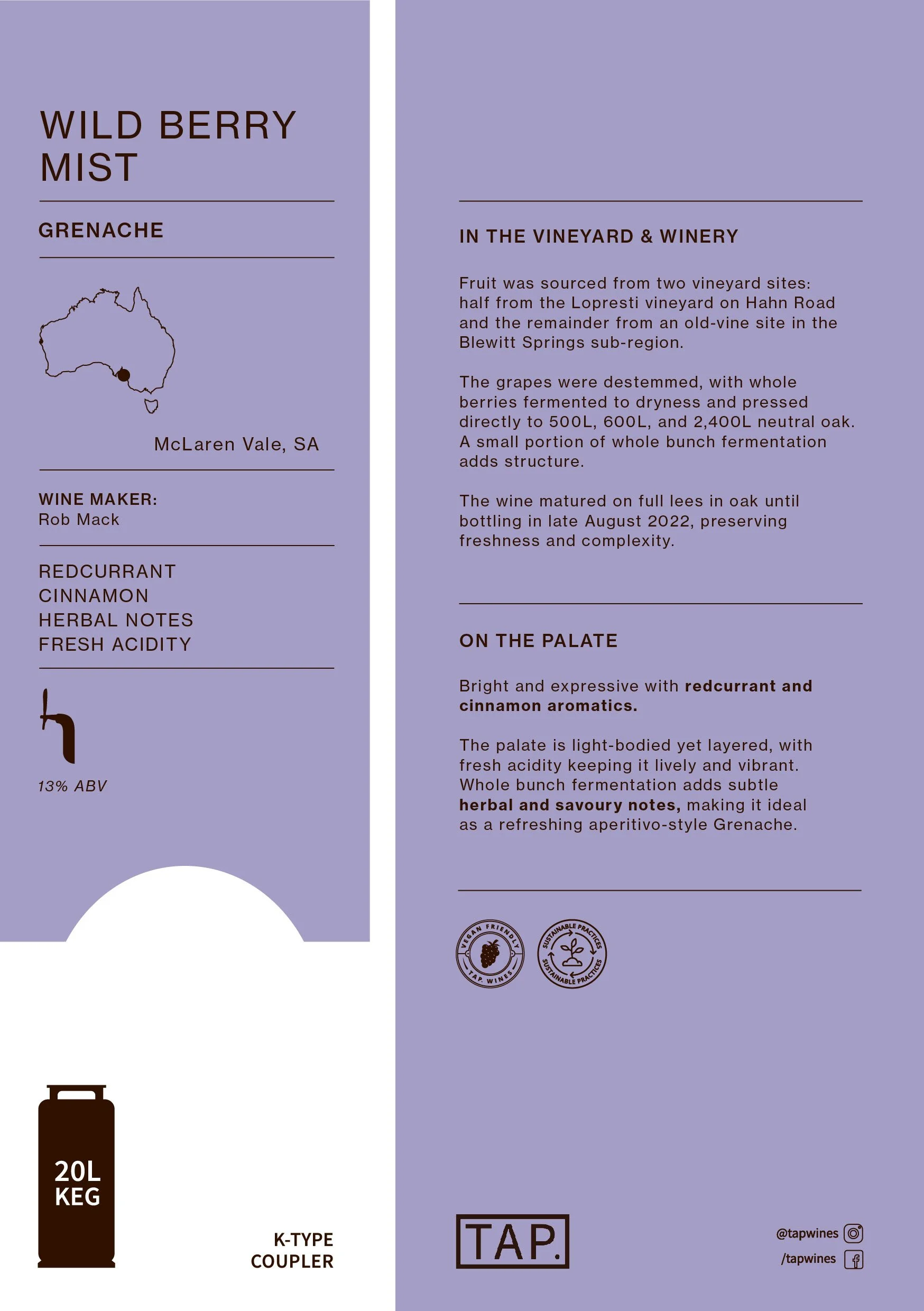 Rebrand for TAP. Wines decals and tasting notes.
